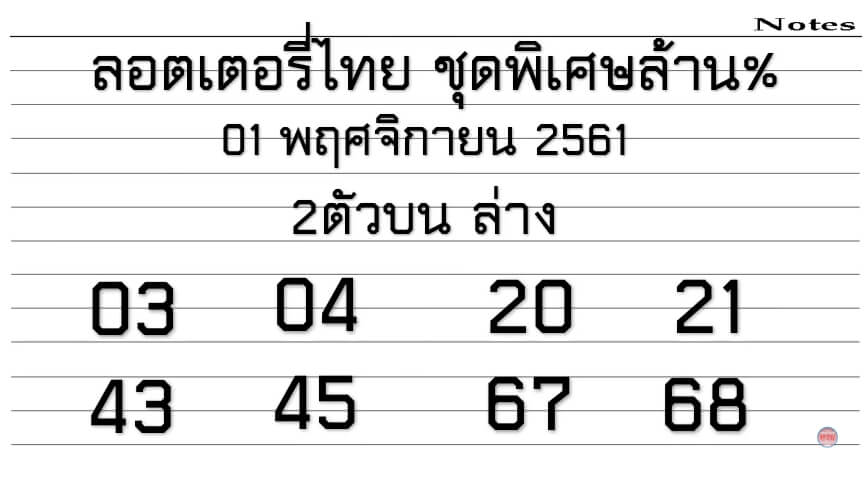 ลอตเตอรี่ไทย1/11/61 ชุดพิเศษล้าน%