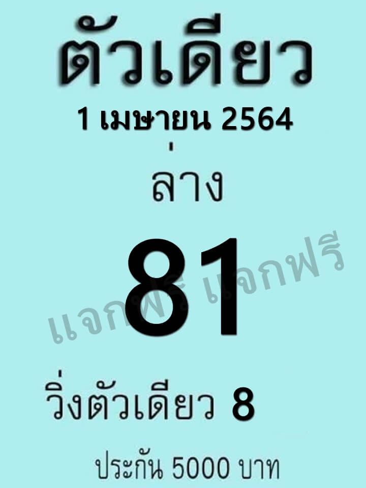 หวยตัวเดียว 1/4/64 อัพเดทเลขวิ่งตัวเดียวงวดนี้