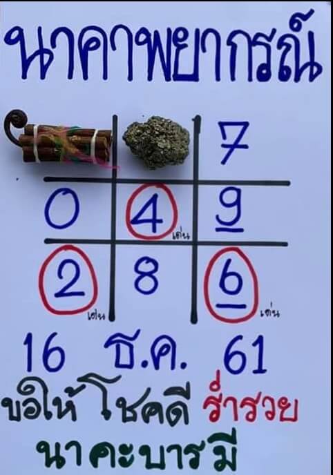 หวยนาคาพยากรณ์16/12/61 รวมเลขเด็ดจากตารางหวยแม่น