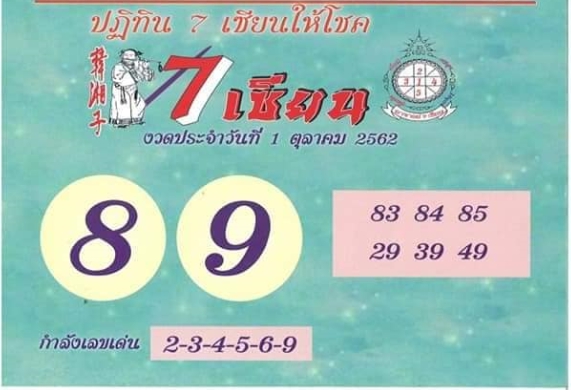 หวยปฏิทิน 7 เซียนให้โชค 1/10/62 เลขปฏิทินดังมาแรง
