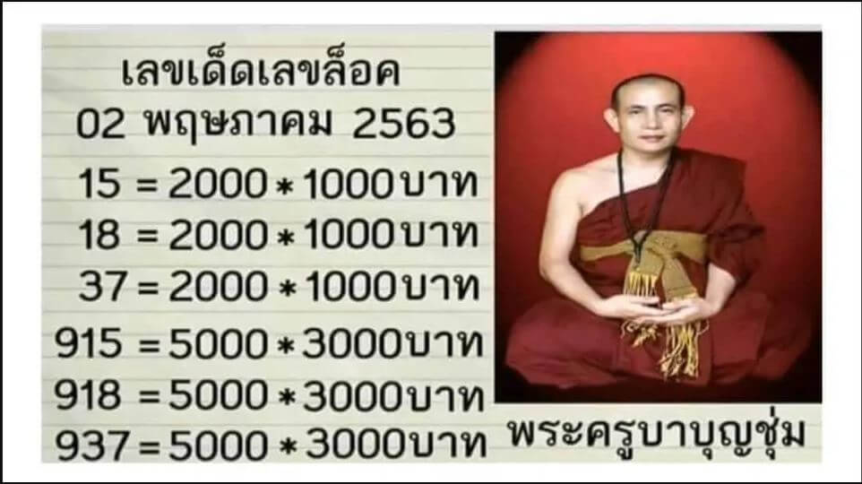 หวยพระครูบาบุญชุ่ม 16/7/63 เลขครูบาบุญชุ่มงวดนี้