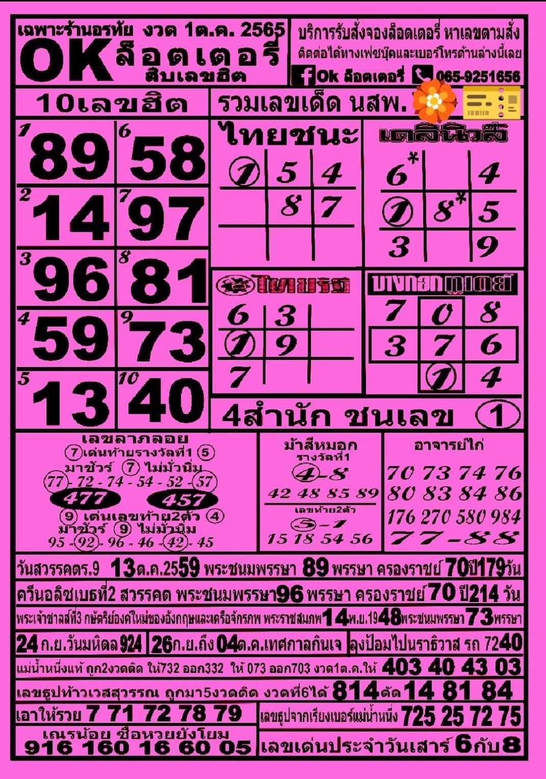 เลขเด็ด หวยOKลอตเตอรี่ รวมเลขเด็ดเลขดัง สิบเลขฮิตOKลอตเตอรี่, หวยหนังสือพิมพ์, หวยลาภลอย, หวยอาจารย์ไก่, และชุดเลขเด่นประจำวันสำคัญที่มีโอกาสออกมากที่สุด แผงเลขเด็ดOKลอตเตอรี่ หวยเด็ดงวดนี้ แนวทางหวยเด็ดที่สุดในโลก