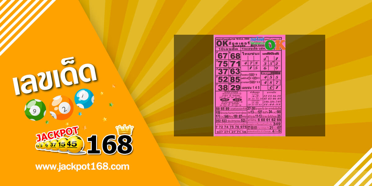 หวยออนไลน์ เว็บไซต์ Jackpot168 เปิดบริการแทงหวยออนไลน์ตลอด 24 ชั่วโมง พร้อมมอบโปรโมชั่นที่ดีสุดให้กับทุกท่านอัพเดทเลขเด็ดงวดนี้ หวยเด็ด หวยดัง แหล่งหวยเด็ดที่สุดในโลก หวยOKลอตเตอรี่ ข้อมูลข่าวสารหวยรายวัน แนวทางหวยแม่นๆ เลขเด็ดออนไลน์ jackpot168 รวมหวยเด็ดงวดนี้