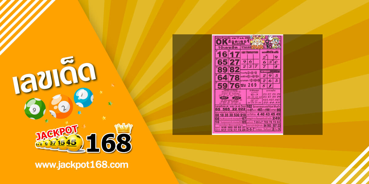 หวยOKลอตเตอรี่ 17/1/65 อัพเดทOKลอตเตอรี่สิบเลขฮิตงวดนี้